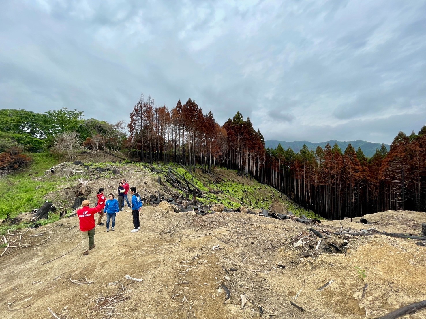 平成以降、国内最大規模の被災となった岩手県大船渡市の山林火災。市の面積の1割にあたる約3,370ヘクタールが延焼、1人が亡くなり住宅90棟を含む226棟の建物が被害を受けました。Civic Forceでは、発災直後の2月28日からスタッフを派遣し、支援物資配布や避難所の環境改善などに取り組みました。