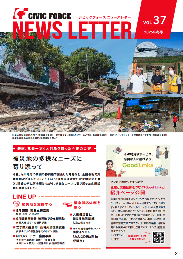 今夏、九州地方の豪雨や静岡県で発生した竜巻など、全国各地で災害が相次ぎました。Civic Forceは発災直後から被災地に足を運び、現場の声に耳を傾けながら、多様なニーズに寄り添った支援活動を展開しました。