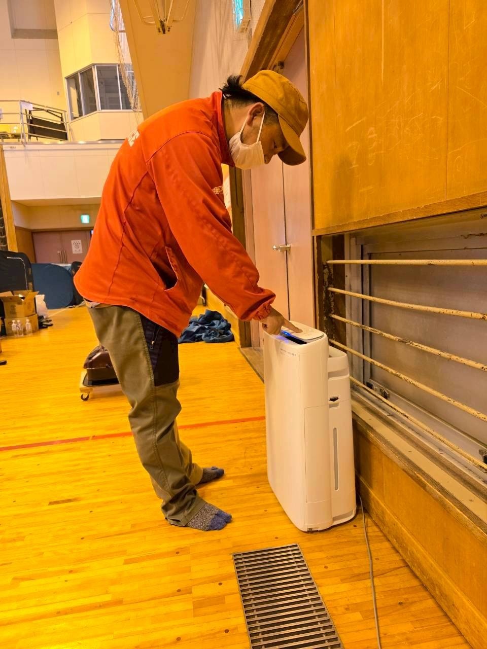 【岩手県 大槌町 山林火災】体育館にサーキュレーターを設置