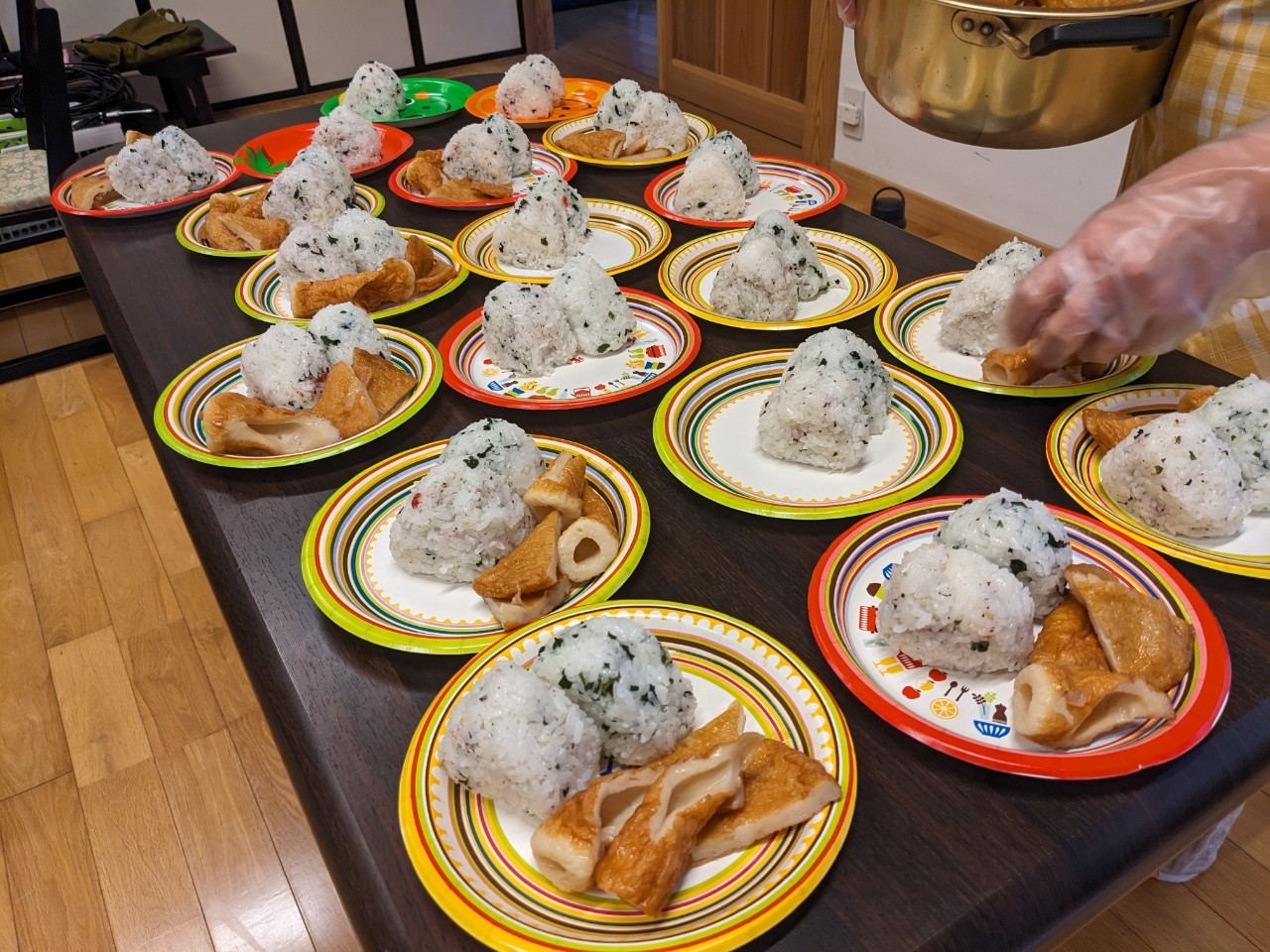 お昼にはお母さんたちがつくったご飯をみんなで一緒に食べました。
