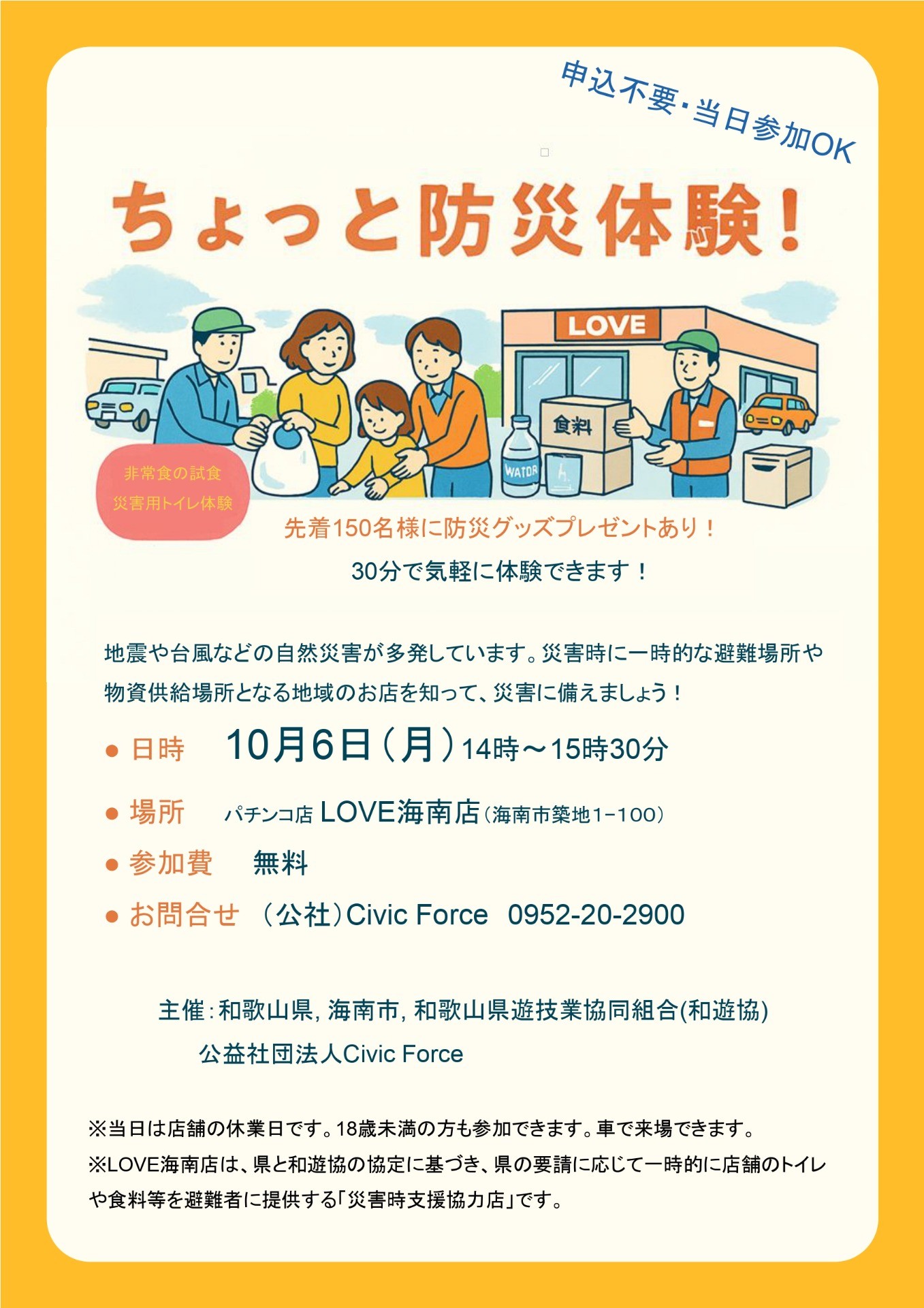 【和歌山県海南市で訓練】防災イベント参加者募集